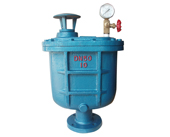 本阀为圆桶状式阀体,共内部主要有不锈钢浮球及塞头。 本阀装设于泵埔出口处或送配水管线中,用以大量排除管道中的集结之空气,以增进水管及抽水机使用效率,且与管内一旦出现负压时,此阀能迅速吸入空气,以保管线因负压所产生。